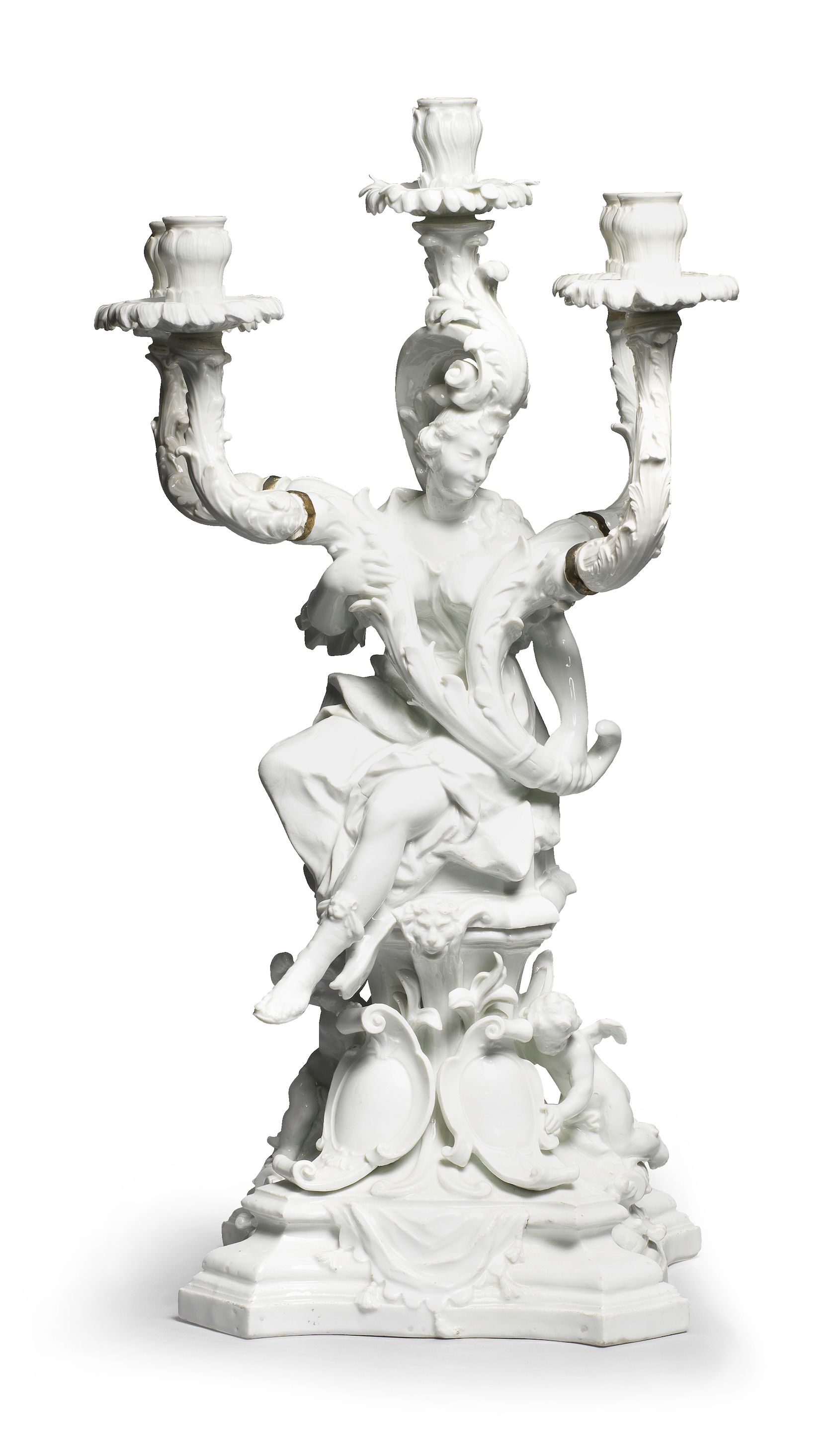 A large and rare Meissen white 'Sulkowski Service' candelabra, circa 1736-40