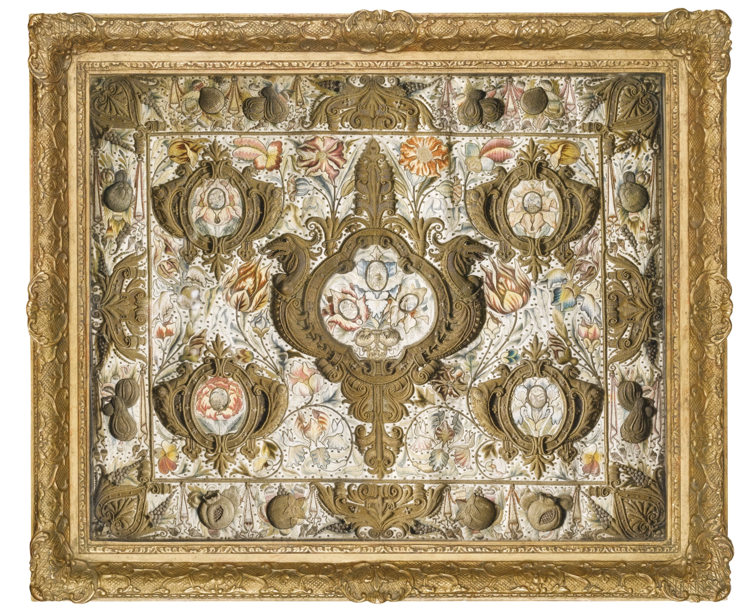 A North European silk and metal-thread embroidered and applique textile panel, probably Flemish 17th century