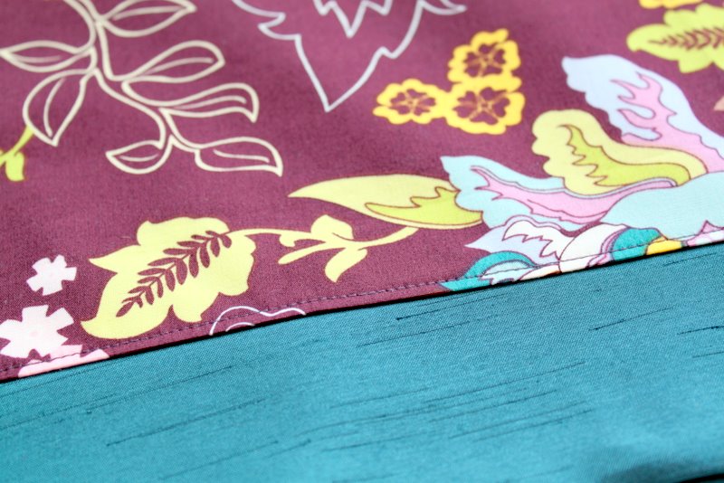 Сшиваем задние части полотнища, оставив 8 см сверху не зашитыми. Все швы обрабатываем швом зиг-заг и разутюживаем.