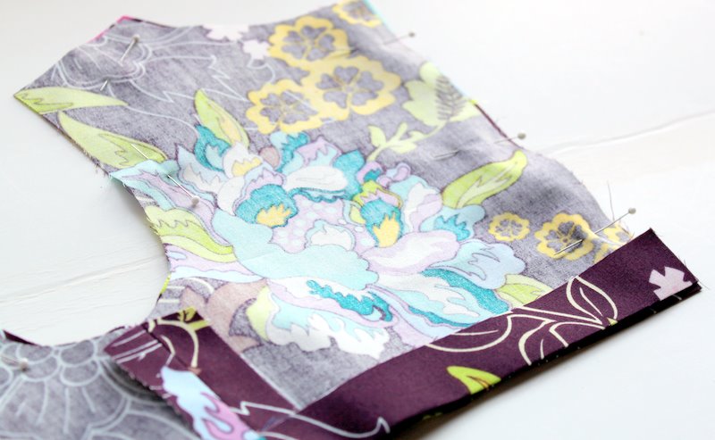 Сложите внешнюю и внутреннюю детали лифа лицевыми сторонами друг к другу. Наколите или сметайте.