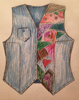 А можно и "потаскать квадратики" по полотнам, из которых затем выкроить спинку и полочки жилета. Выкроив полосочки из основной фоновой ткани, следует разрезать их в разных местах и вставлять туда квадратики. Геометрия может быть разной-преразной. И вариантов - тысячи.