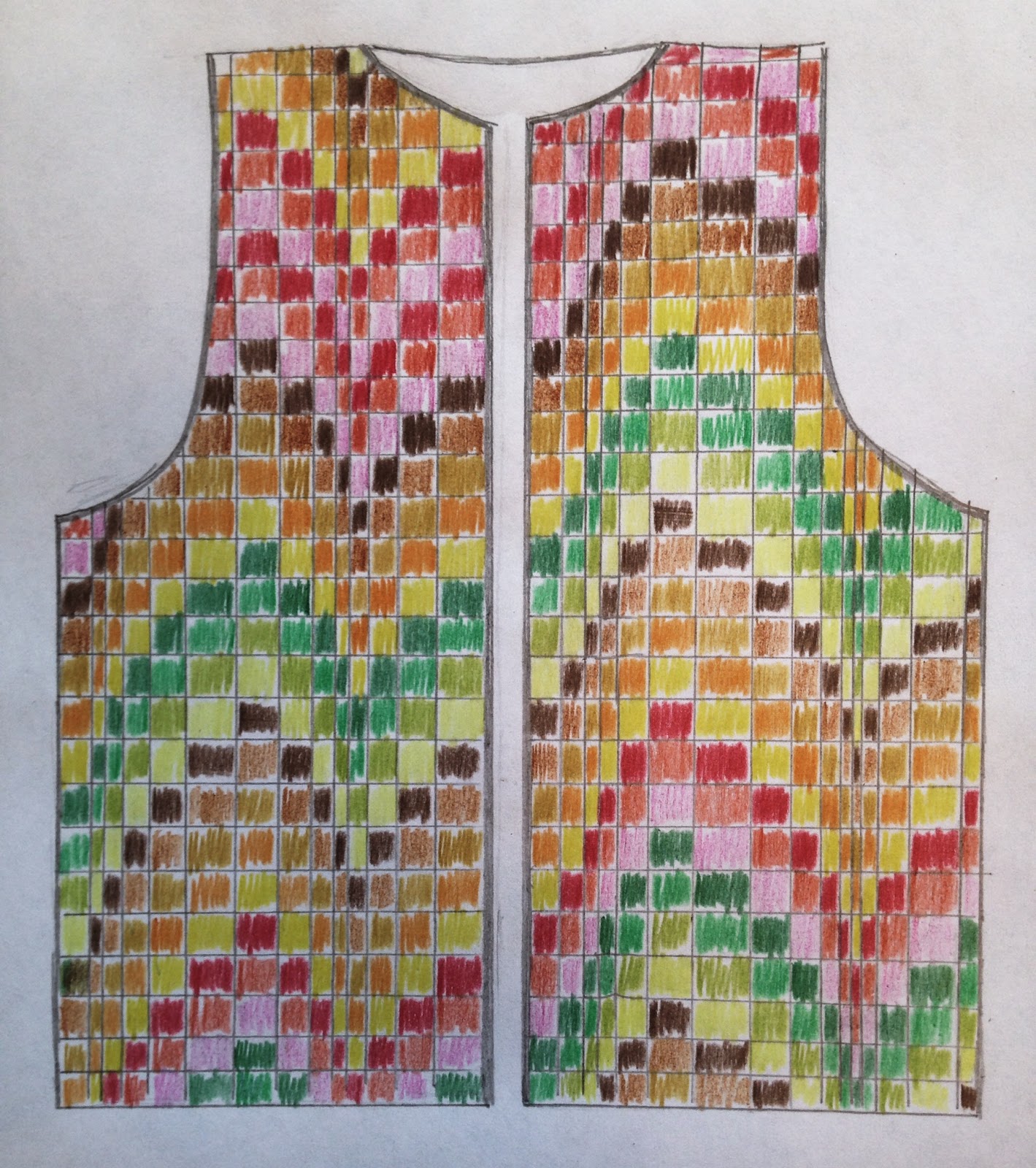 Самый простой и логичный путь - сшить жилет из простых квадратиков. Можно выбрать рисунок в виде шахматной доски. Можно расположить квадратики в виде цветовых пятен.