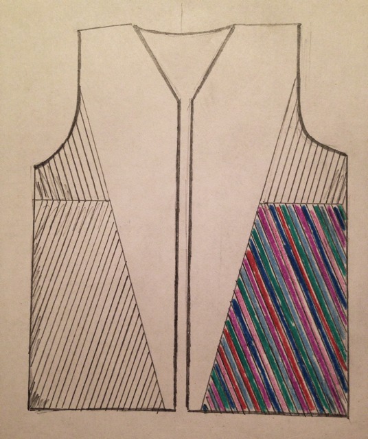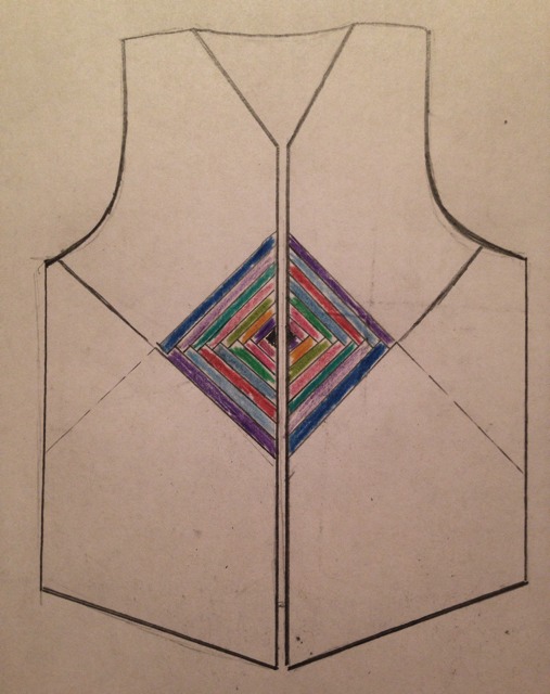 Выкройка этой жилетка очень проста: нет рельефных вытачек на спине и на полочках. Можно сделать обыкновенные горизонтальные вытачки чуть пониже проймы, они не смогут сильно исказить лоскутный рисунок. Небольшие вытачки на спине тоже неопасны. А самое важное: эти вытачки можно спрятать в лоскутный рисунок.