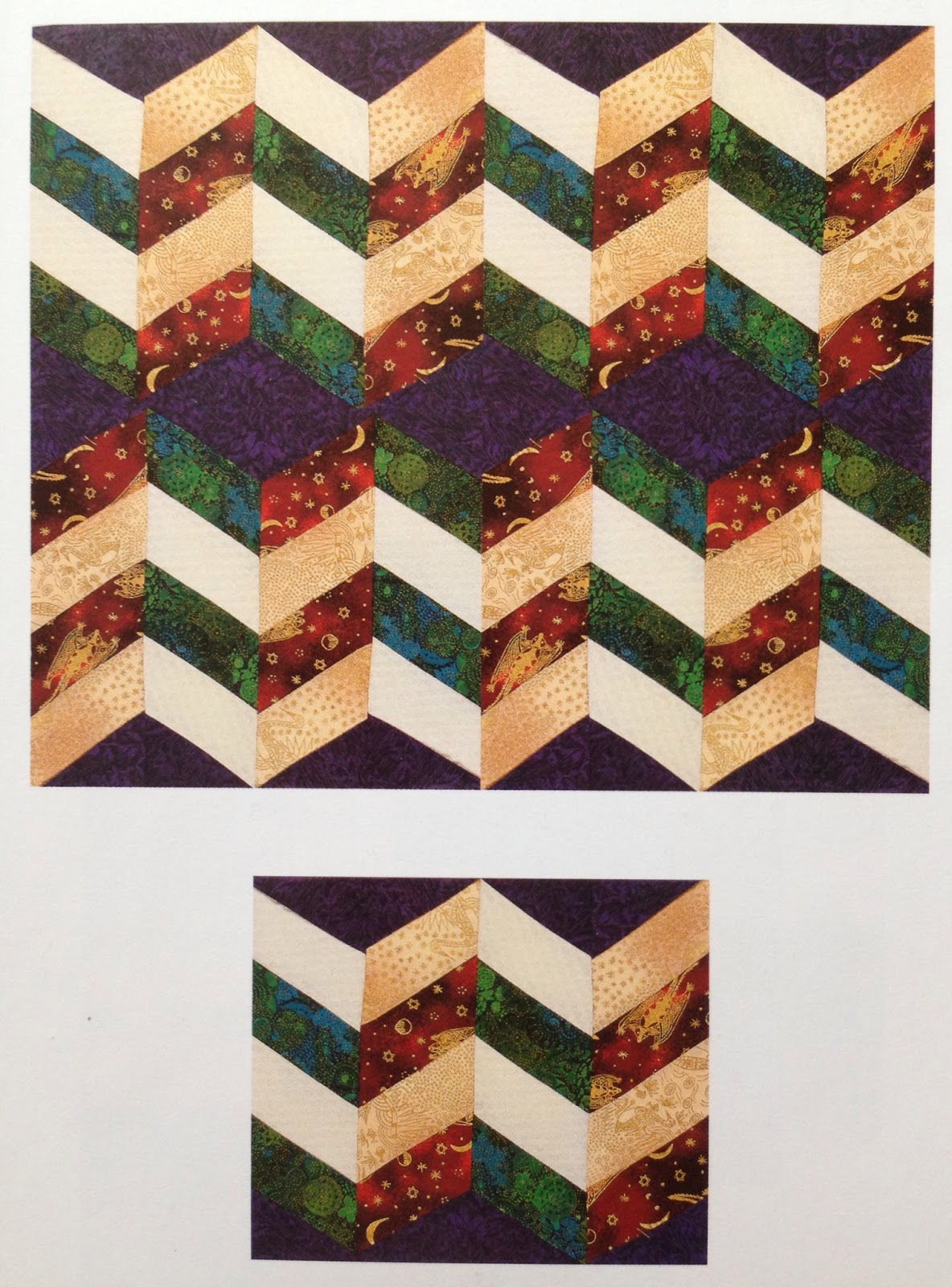 Этот рисунок выглядит сложно, а изготавливается просто (лучше было бы поискать мастер-класс с барджелло). Полосочки одинаковой ширины сшиваются в единое полотно. Их цвет - ваше желание. Но "волна" будет видна, если ткани располагать приблизительно так: тёмный 1-й цветовой гаммы, посветлее 1-й цветовой гаммы... самый светлый 1-й цветовой гаммы, / тёмный 2-й цветовой гаммы, посветлее 2-й цветовой гаммы... и т. д. Это опять же - свобода! Никто не заставляет делать то, что не хочется! Можно, например, использовать ткани одного тона.