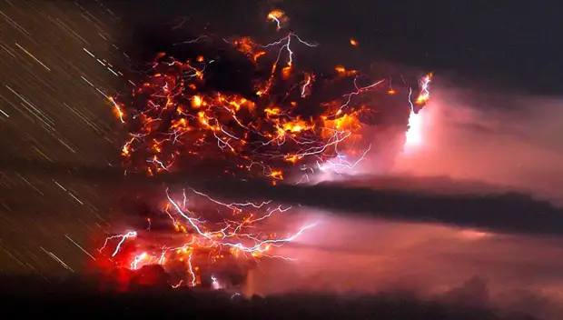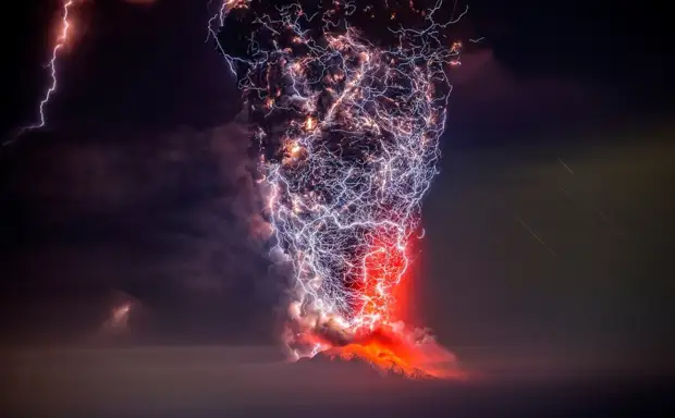 Во время извержения вулкана в поднимающемся облаке пепла могут возникнуть молнии. Это происходит, когда отрицательно заряженные частицы золы сталкиваются с положительно заряженными газами. Механизм почти такой же, как в обычных облаках, но выглядит куда более зловеще. Впрочем, само извержение вулкана ассоциируется со страшными разрушениями, которые будто отпечатались в общечеловеческом культурном коде.