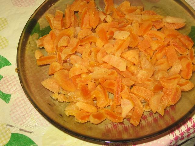 Нарежем курагу, отжав от воды.