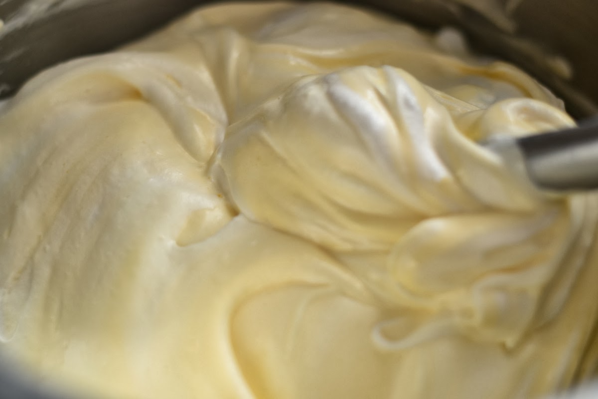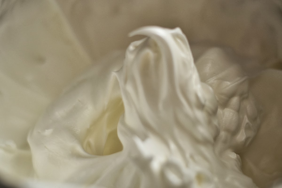 Когда крем хорошо охладился взбить,начиная на минимальной скорости миксера до устойчивых пиков.