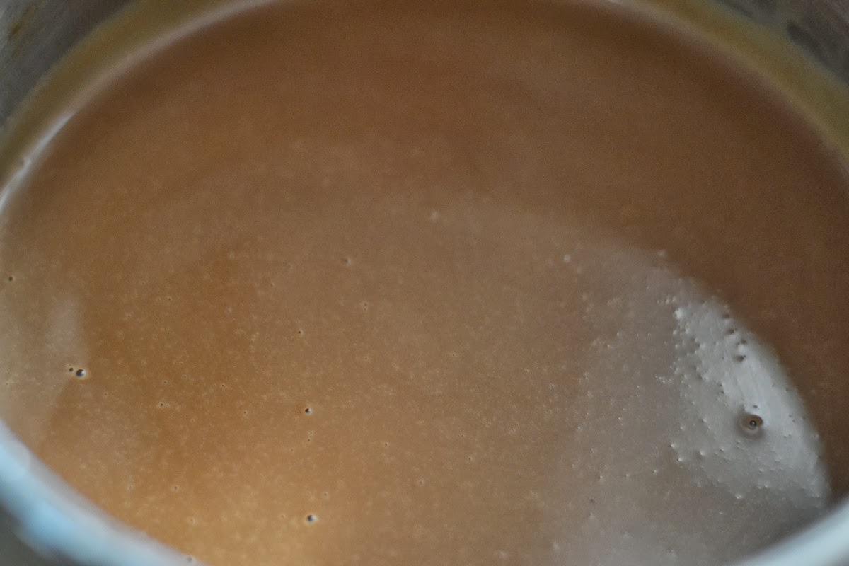 Готовим мусс. Замочить желатин в прохладной воде (35-40 мл). Дать ему набухнуть на минут 5. Затем подогреть,не кипятить до растворения крупинок,процедить через марлю и остудить. Взбить сливки до мягких пиков,добавить струйкой,не переставая взбивать сгущенное молоко у меня ушло чуть меньше половины банки (1 банка 380 г), затем влить желатин, взбить еще пару минут. Мусс готов. Достать торт из холодильника, вылить мусс и отправить снова в холодильник до застывания мусса и пропитки тортика.