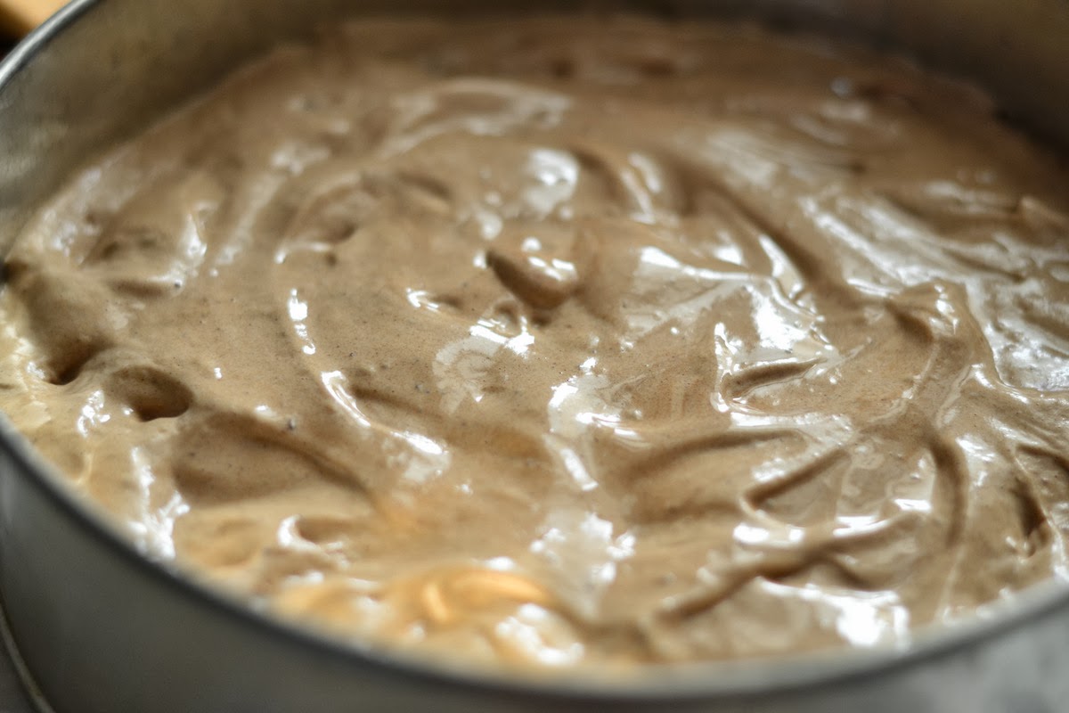 Добавить поэтапно просеянную муку с какао-порошком, перемешать лопаточкой. Несколько ложек отделить в отдельную посуду, добавить растительное масло, перемешать и отправить в основное тесто, перемешать быстренько до однородности.