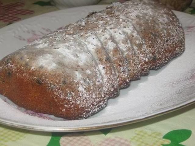 Готовый кекс выкладываем на блюдо, когда он остынет посыпаем сахарной пудрой.