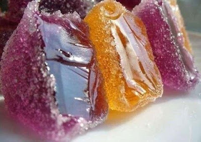 По истечении времени застывший мармелад переложить на посыпанную сахаром пергаментную бумагу для выпечки. Нарезать ломтиками и обвалять каждый ломтик в сахаре.
