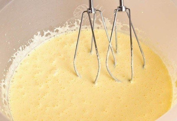 Шаг 1: Духовку предварительно разогреть до 150 градусов. Взбить в миске яичные желтки с 1/3 стакана сахара, добавить растопленное сливочное масло, сметану и соль. Хорошо перемешать до однородности.