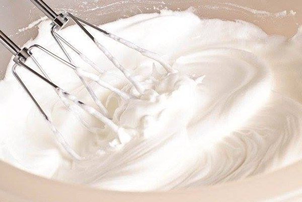 Шаг 4: В другой миске, на средней скорости, взбить яичные белки до пышной пены, постепенно добавляя сахар. Взбивать около 15 минут, до увеличения белковой массы в 2 раза.