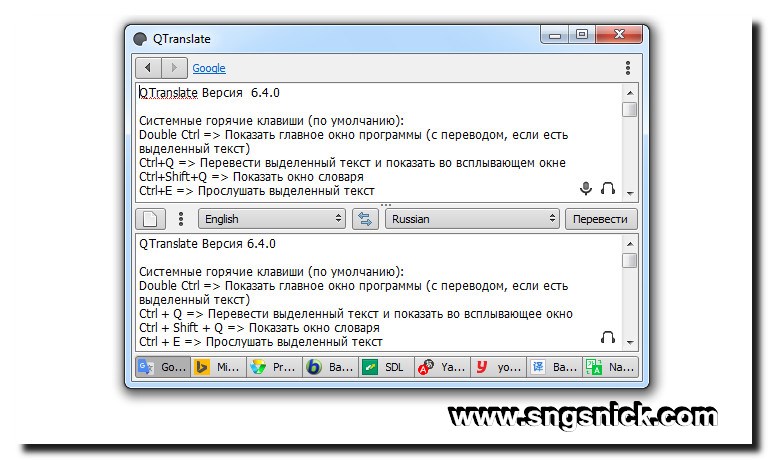 При подготовке статьи использовалась портативная версия программы QTranslate 6.4.0 Portable на русском языке.
