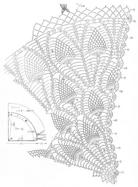 [показать]Еще один вариант шали с рисунком "ананас". Хотя на мой взгляд, здесь не очень удачно сочетание рисунков ажура