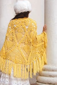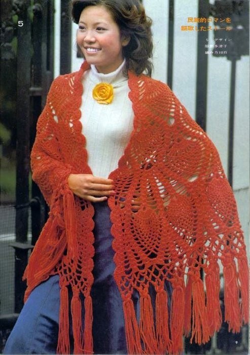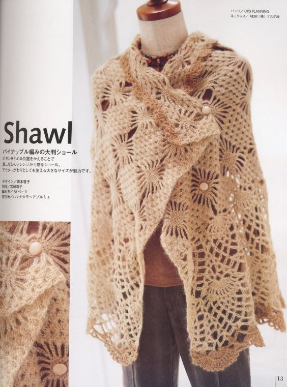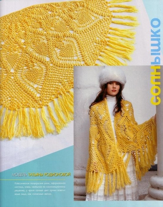 [показать]Очень ажурная и несложная шаль с вывязаным рисунком "ананас". Из блестящей пряжи будет прекрасным дополнением к праздничному платью.