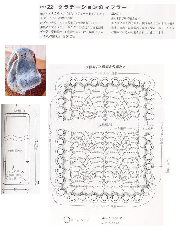 Схема вязания крючком ажурного шарфика, а если добавить еще пару рапортов, то и палантина.