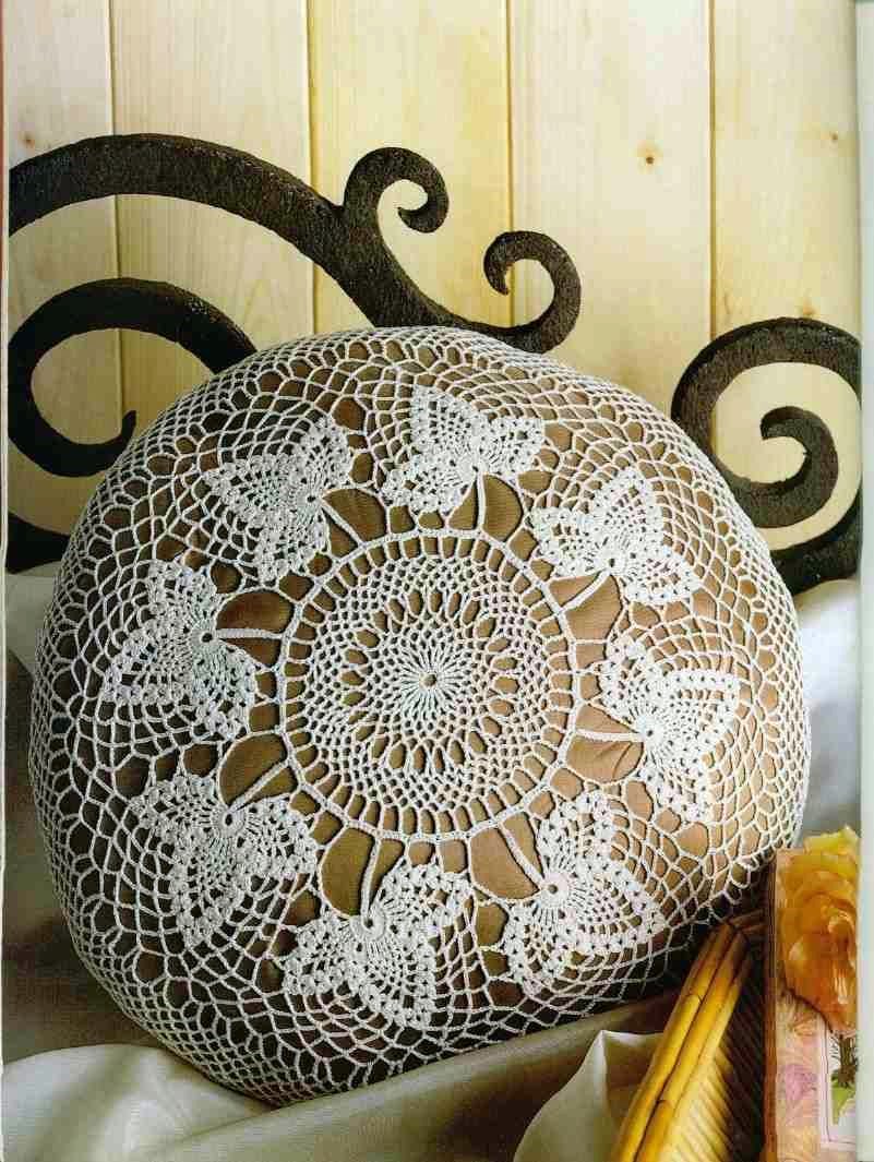 [240x320] "Ананасы"-цветочки на круглой вязаной подушке