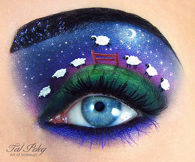 Израильская художница и визажист Тал Пелег создаёт необычный макияж глаз, больше похожий на сказочные иллюстрации и сюжетные картины. Её работы "Спящая красавица", "Принцесса на горошине" и другие меняют представление об обычном макияже глаз, являясь неплохим выбором для вечеринок.