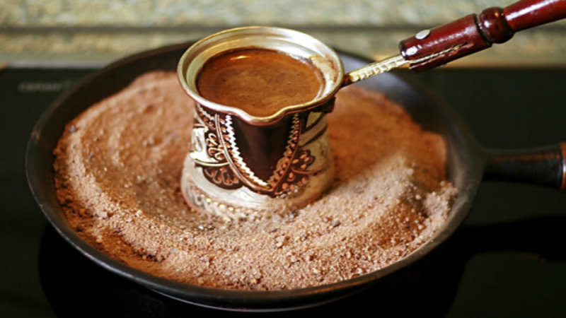 Турецкий кофе известен своей крепостью и необычным способом приготовления. Его варят в медном кофейнике на длинной рукоятке, помещая её в раскаленный песок. Кофе обычно подается после еды вместе со сладким рахат-лукумом. В нижней части чашки всегда остается кофейная гуща от заварки, у которой есть свое особое предназначение. Эта кофейная гуща используется для гадания. Насладившись своим турецким кофе, Вы можете обратиться к гадалке, которая предскажет будущее по остаткам крепкого напитка. Кофе является одним из центральных напитков в традиционной кухне Турции.