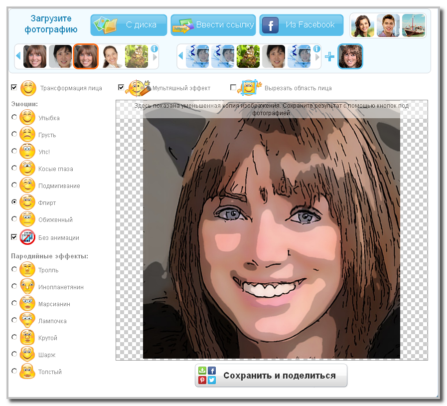 К сожалению, на скриншоте я не могу Вам показать анимацию, хотя это довольно забавно. Здесь же можно делать карикатуры и дружеские шаржи.
