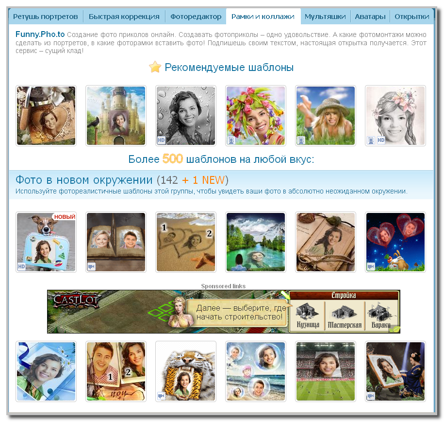 Здесь очень много самых различных шаблонов. Думаю, что это Вы посмотрите сами. А вот пример применения одной из рамок я Вам покажу: