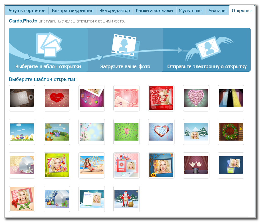 Здесь Вы можете делать визуальные флэш открытки с Вашими фото. Открытки довольно интересны: кликая по ним мышью, можно как бы очищать их от луковой чешуи. Этими открытками можно поделиться в социальных сетях. Но не очень удобно, что такая открытка на сервисе существует всего 2-3 дня. Чтобы Вы примерно представляли, как выглядит такая открытка(текст, конечно, можно добавлять), я снял с нее скриншот, посмотрите: