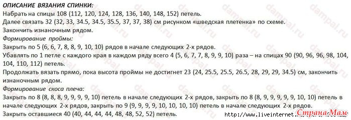 По лицевой стороне левой полочки, начиная от края, набрать и провязать лицевыми 109 (116, 120, 124, 132, 137, 144, 146, 168) петель по краю проймы.