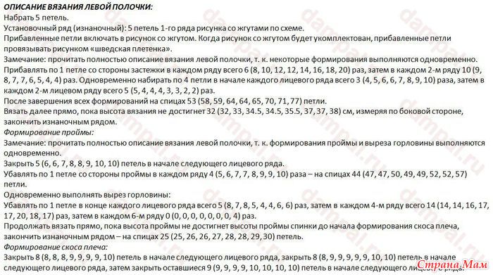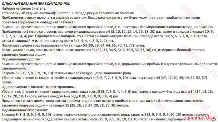 22 петли и 28 рядов = 10 см рисунка «шведская плетенка»