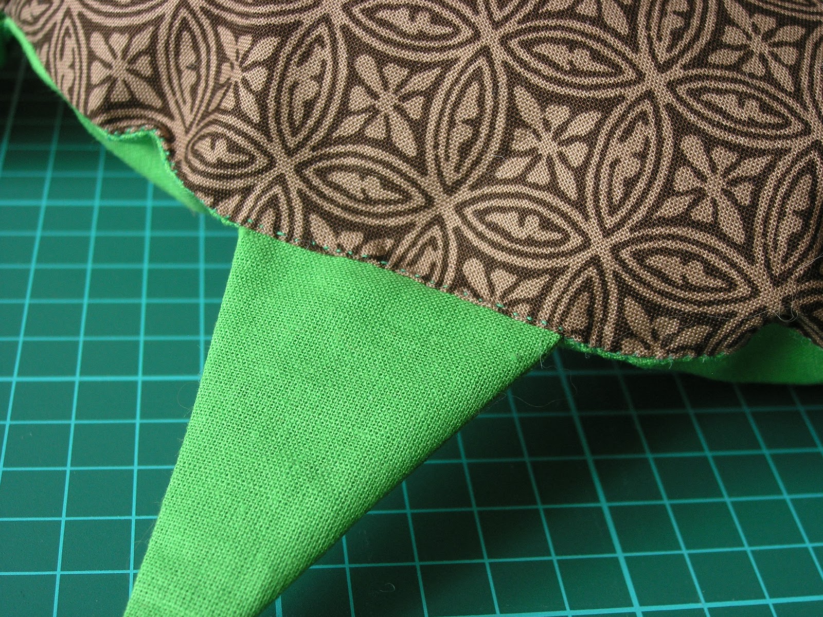 Рога пришиваются так же, но предлагаю примерить их местонахождение. Сделать очень просто: прикладываем готовую голову или ее выкройку (если голову оставили на потом) к краю подушки, совмещая линию на выкройке с краем (про припуски на швы не забываем).
