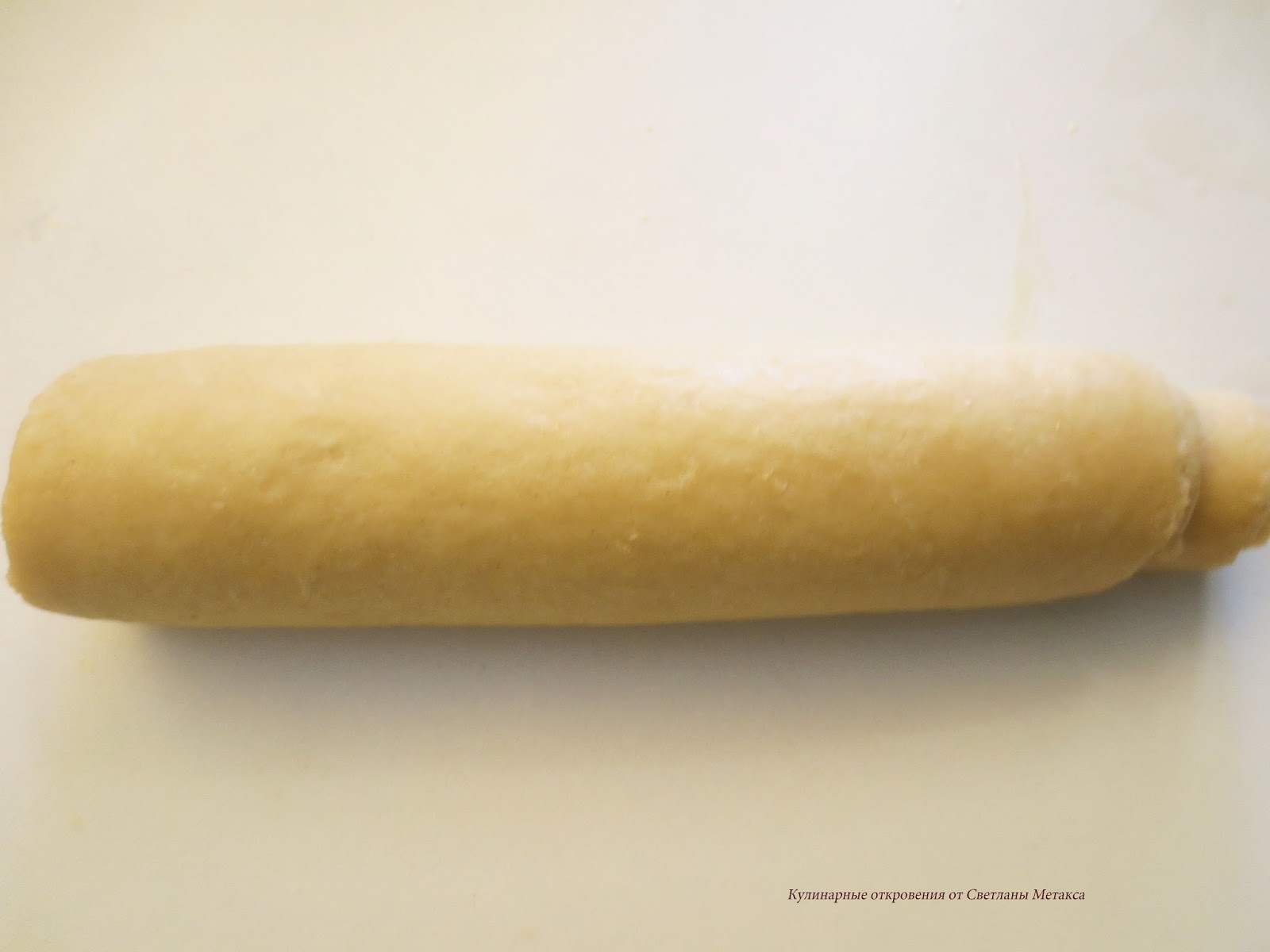 Разделить тесто на 4-6 одинаковых частей и из каждой части раскатать прямоугольную длинную лепешку