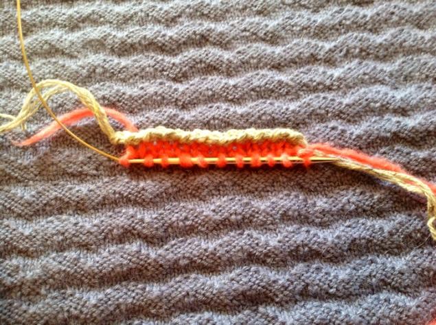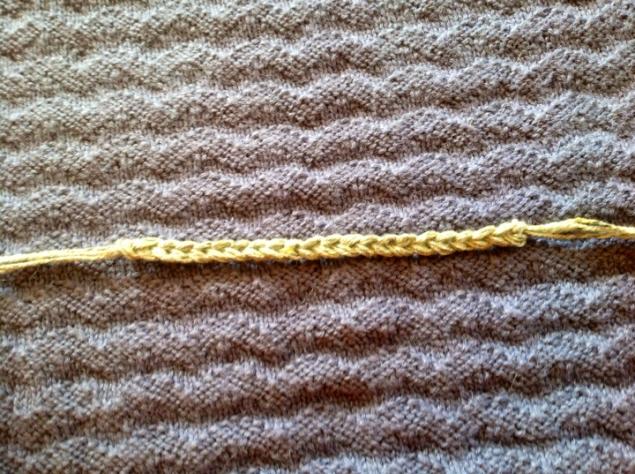 Далее вяжем резинку 1х1. Дополнительную нить цепочки распускаем.