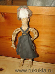 Кукла готова. Основные детали куклы не сшивались. При ее изготовлении использовалась традиционная техника продевания одной детали в другую. Глядя на эту куклу, вспоминаешь слова нашего известного тульского поэта В.Ходулина: «Оружейником надо родиться, а потом еще долго трудиться, чтобы признанным Мастером стать».