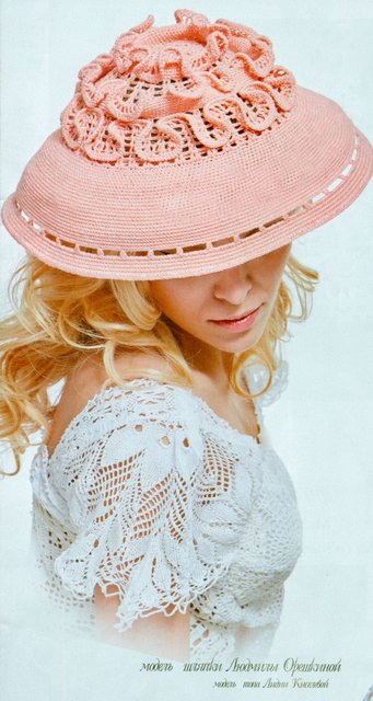 Обвязку тульи выполняйте крючком № 1,5 ст. б/н. Высота обвязки 1,5 см. Декорируйте «рачьим шагом».