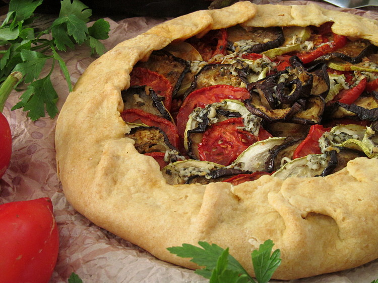 Достать галету из духовки и полить сверху овощи подготовленной заливкой.