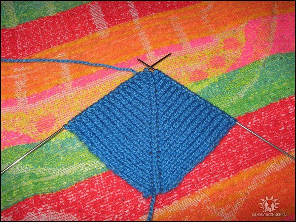 На спицах 57 петель. Последний раз накиды делала с изнаночной стороны.
