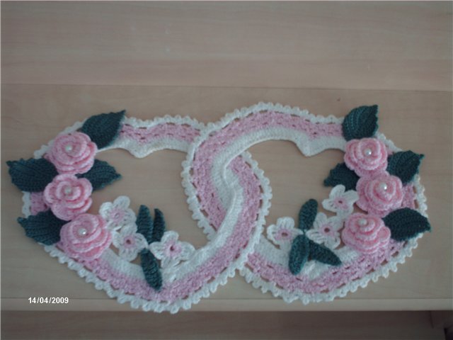 Второе сердечко вяжем так же, но в первом ряду, прежде чем соединить цепочку из воздушных петель, продеваем ее через уже готовое первое сердечко.