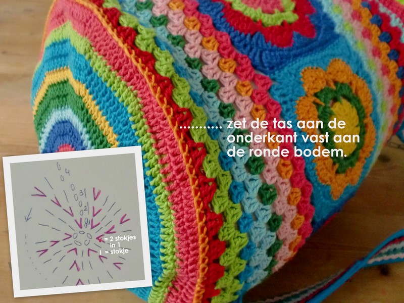 Яркая сумка крючком в спортивном стиле.