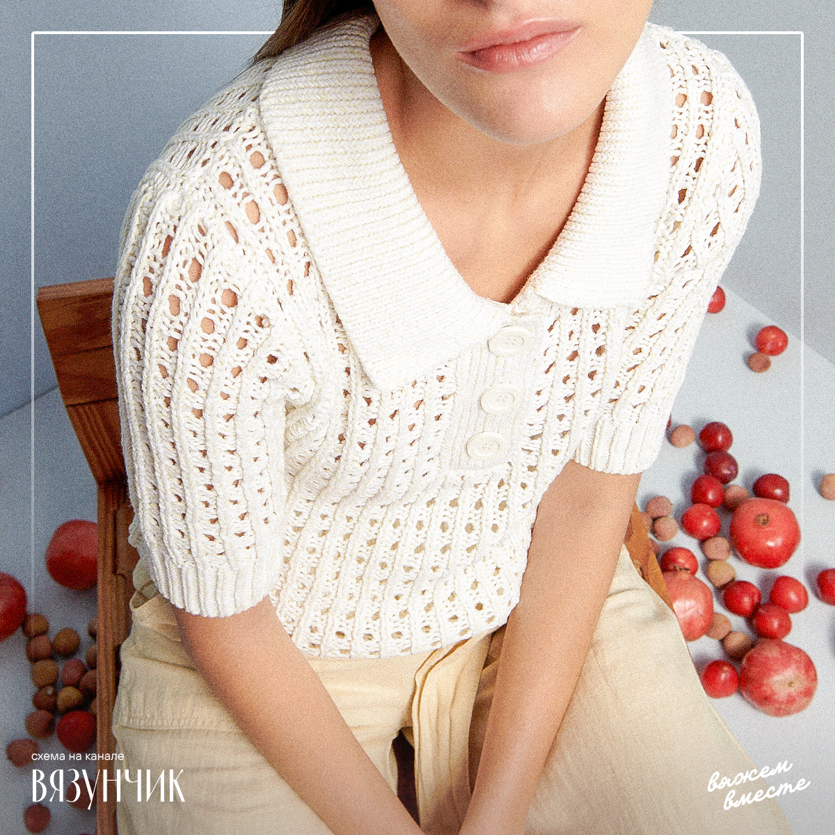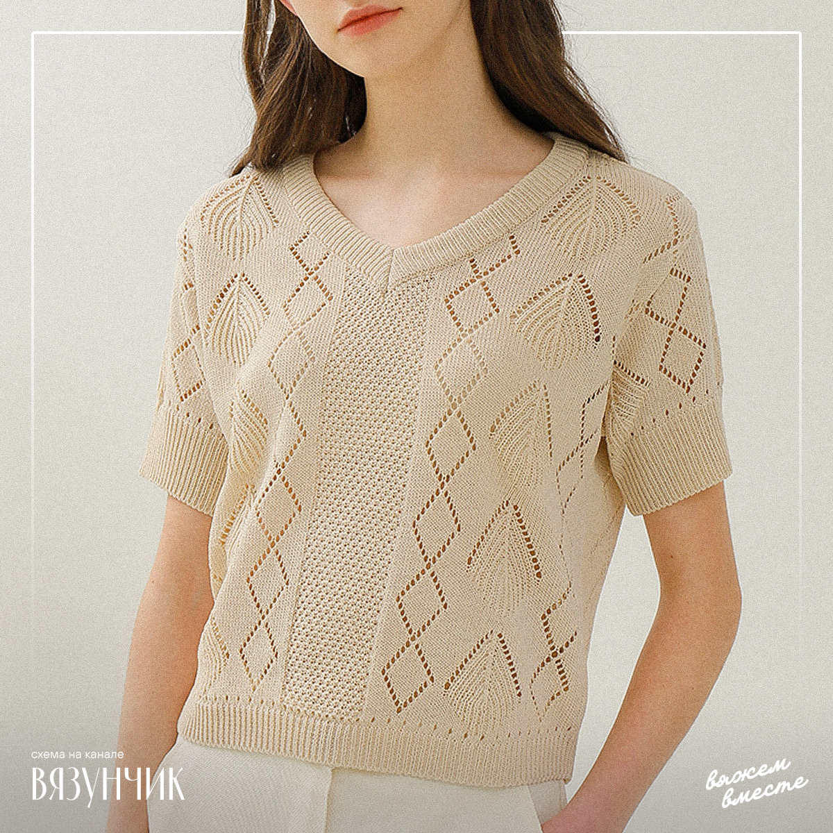 Очень простой, но симпатичный топ, который подойдет практически всем. Модель, хотя используется 6 видов переплетений, нельзя назвать перегруженной или чересчур броской.