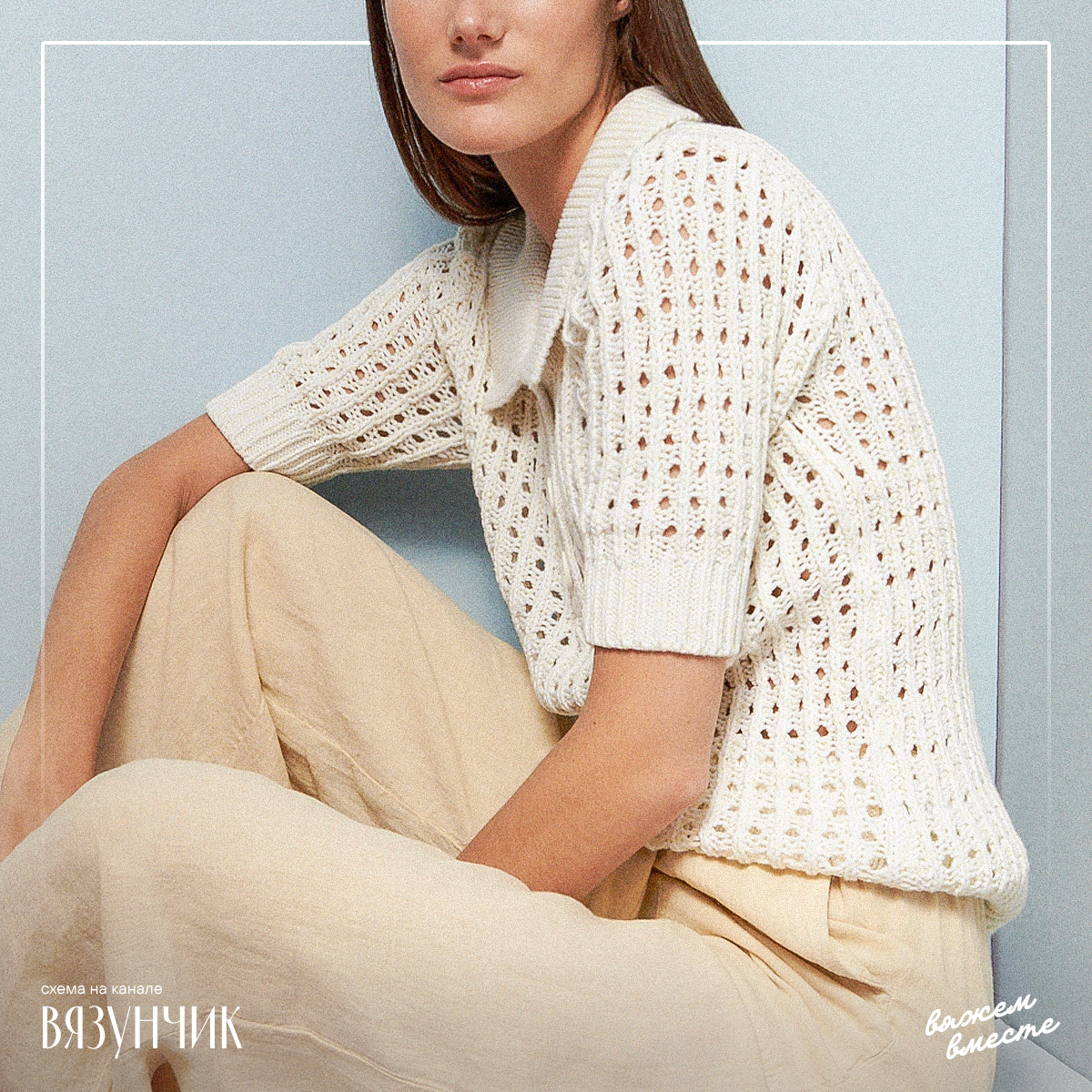В оригинале топ связан из акрила. НО сюда подойдет и буретный шелк, и лен, и хлопок, и даже кашемир. Пряжа должна быть достаточно тонкой и пластичной.