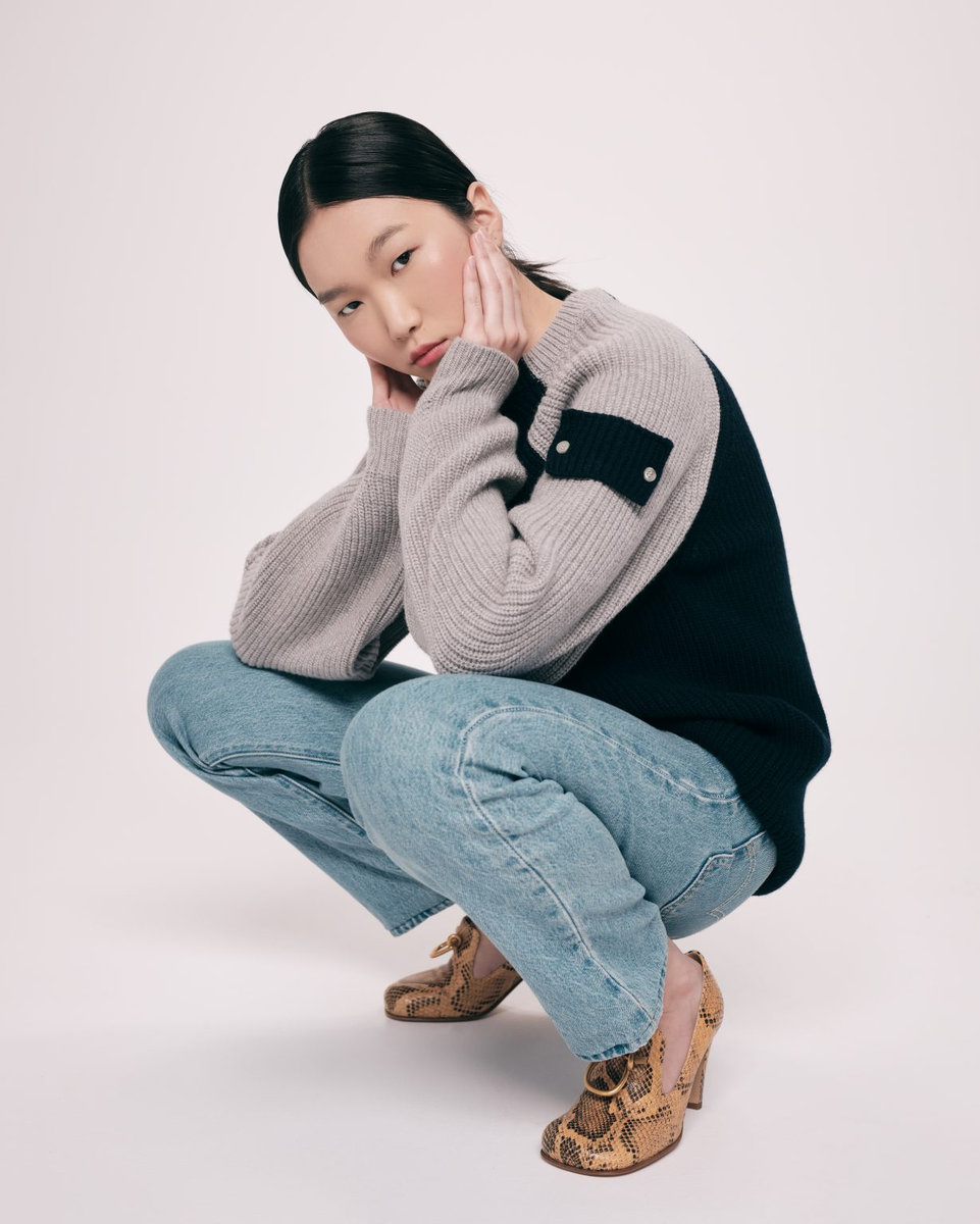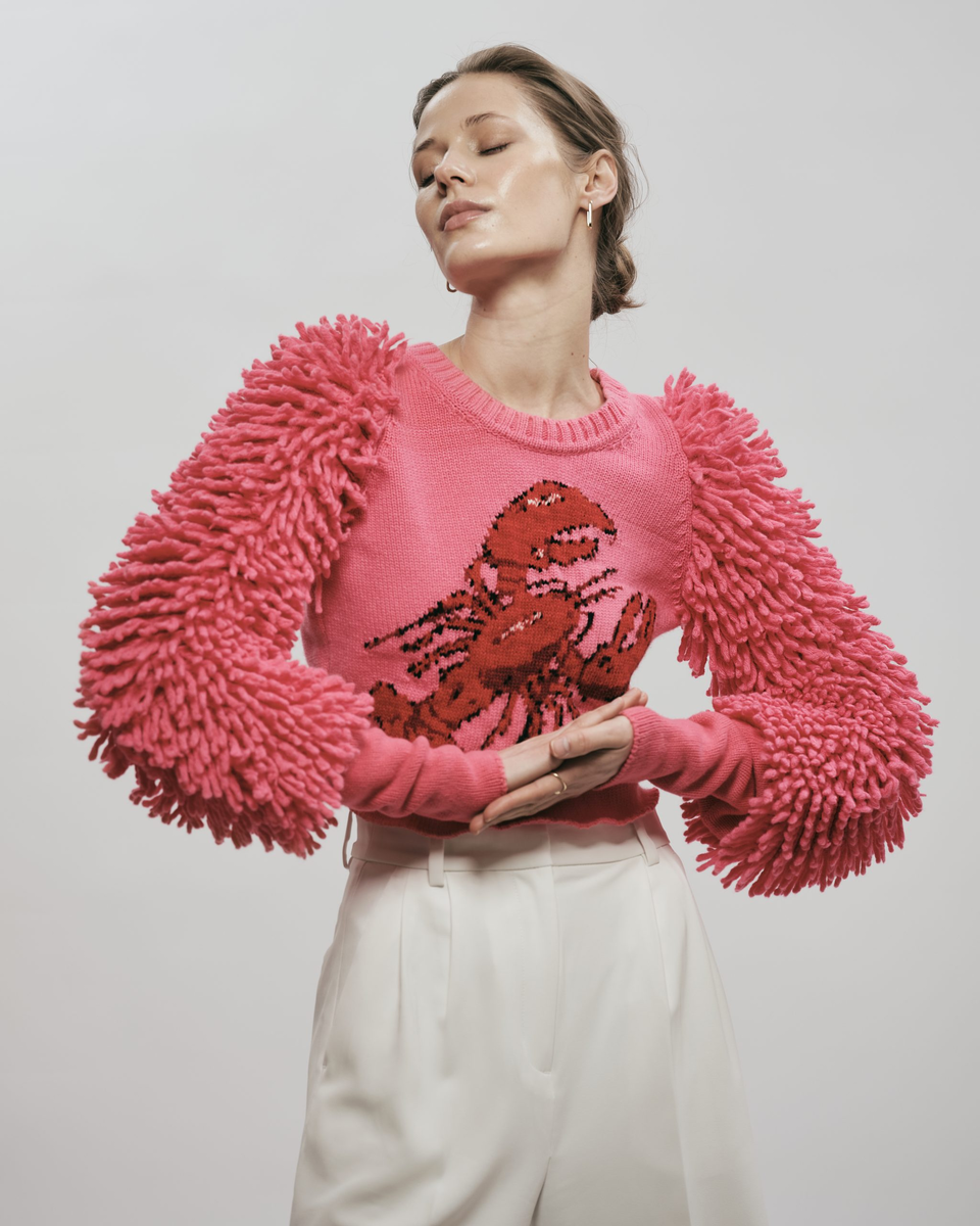 В этой модели - интересные "мохнатые" рукава и рисунок, стоит такой свитер € 273