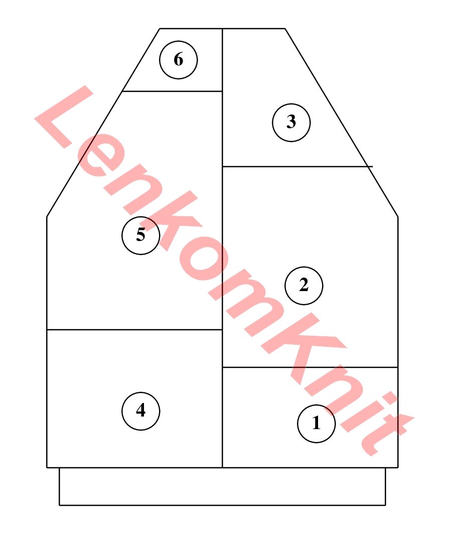 Я нарисовала условную схему передней части свитера и отметила цифрами узоры:
