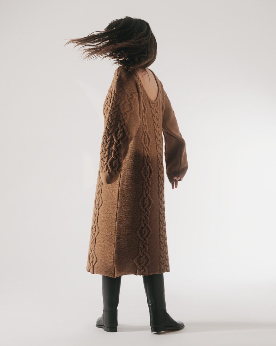 Мне кажется, такое платье будет толстовато и слишком тяжелое, а вот длинный кардиган или пальто - очень даже неплохо. На фото это платье показано с разным освещением. Думаю, это сделано для того, чтобы показать, как выглядит модель при ярком дневном и при искусственном освещении.