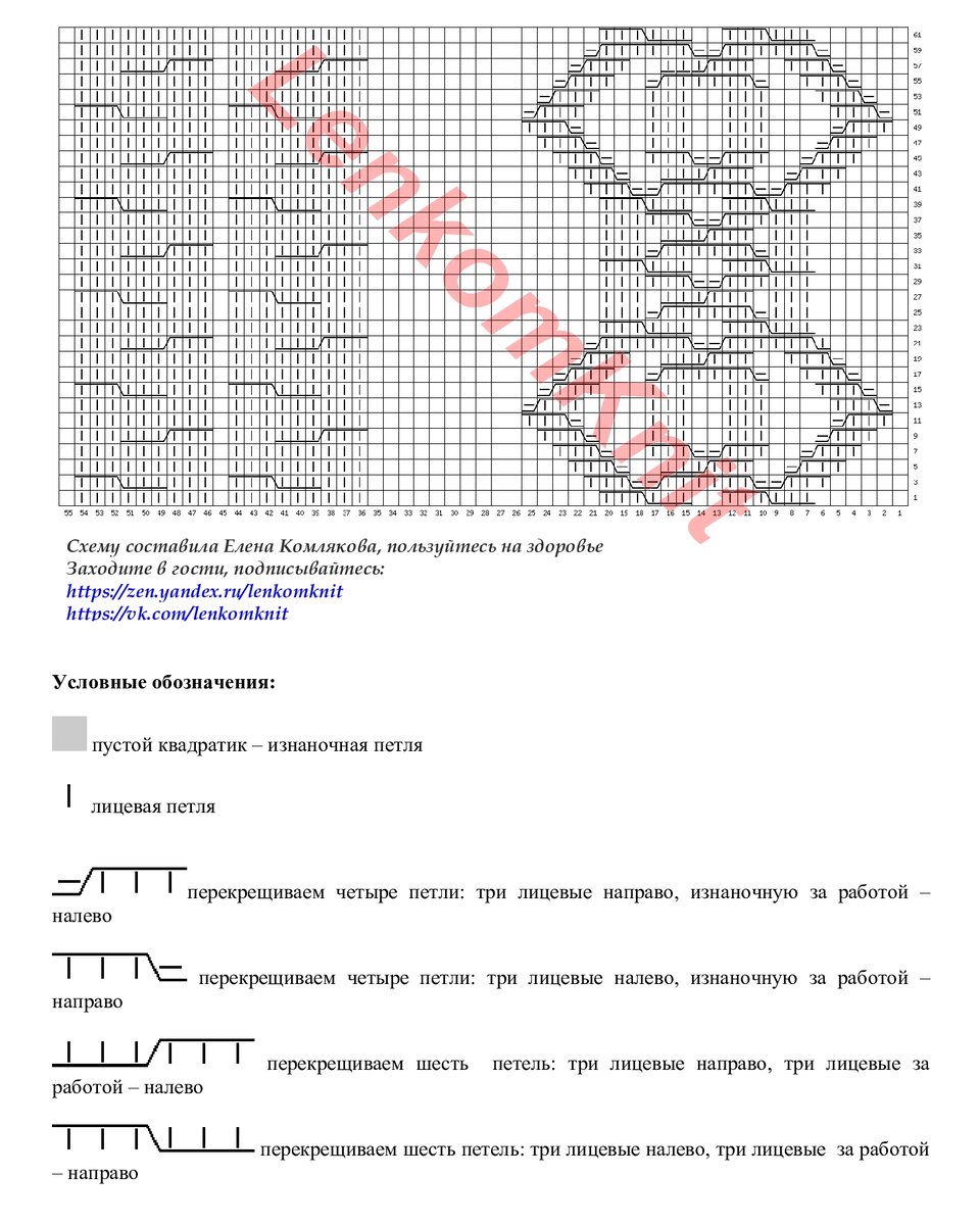 Схема узора № 2. Это узор - самый трудоемкий в свитере, я его вырисовала целиком. В ширину он 64 петли, в высоту - 58 рядов.