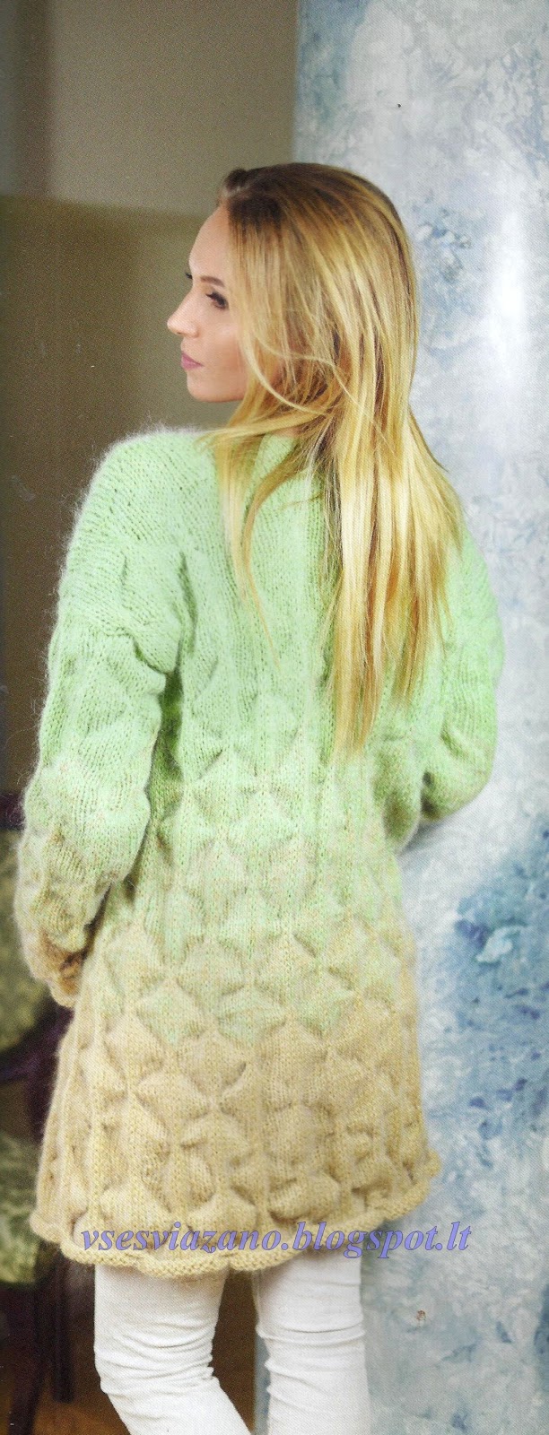 Как Вам весеннее полупальто? Правда очень хочется? а цвета какие- сразу повеяло весной. И вот именно такого сочетания цветов мы еще не видели! Пряжа эта недорогая, жакет весенний и прекрасный, узор не полнит- вперед за спицы и будьте весной самой красивой!