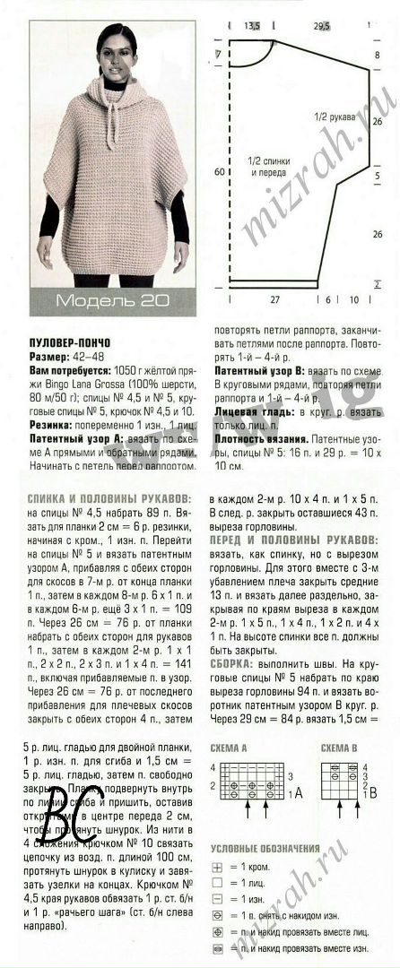 Пончо-пуловер с большим воротником-капюшоном станет Вашей желанной и запоминающейся вещью