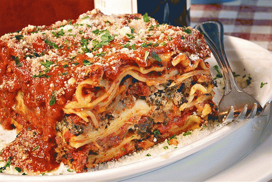 Измельчи и поджарь на оливковом масле сначала луковицу, затем добавь пару морковок, 2-3 веточки сельдерея и 500 г шампиньонов. Вылей содержимое литровой банки томатов в собственном соку и туши 30 минут. Немного готовой начинки выложи в форму для лазаньи. Сверху – сухие пласты пасты, затем снова грибной фарш, опять паста – должно получиться 4-5 слоев. Выпекай лазанью в разогретой до 180° С