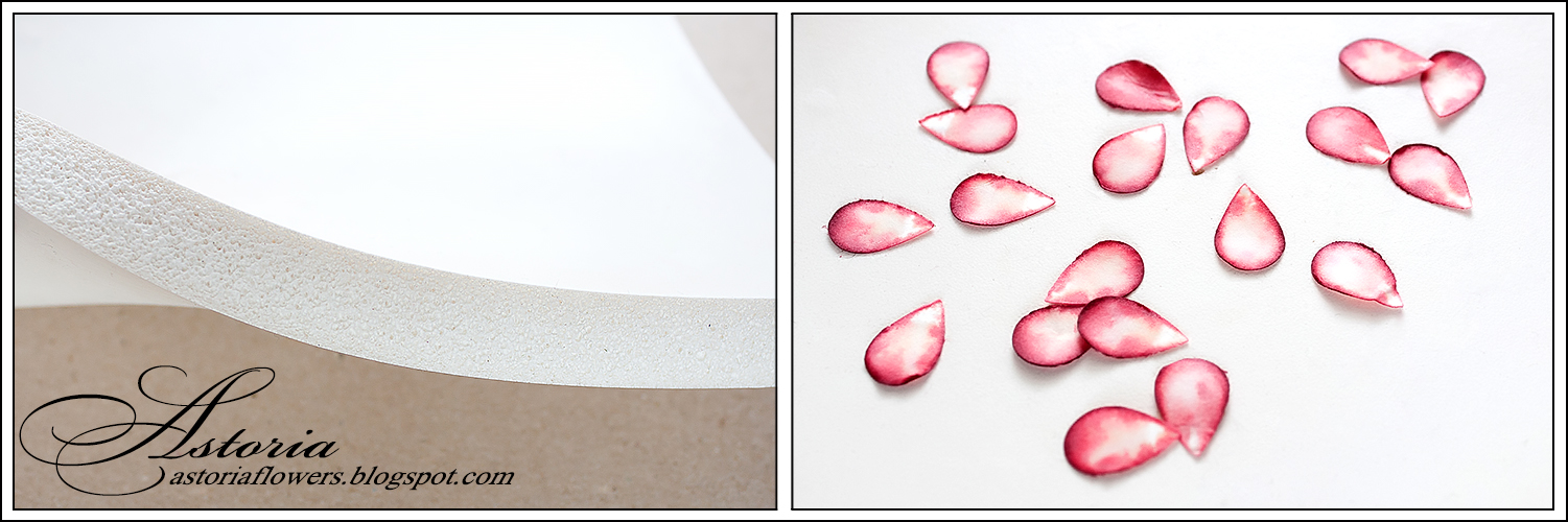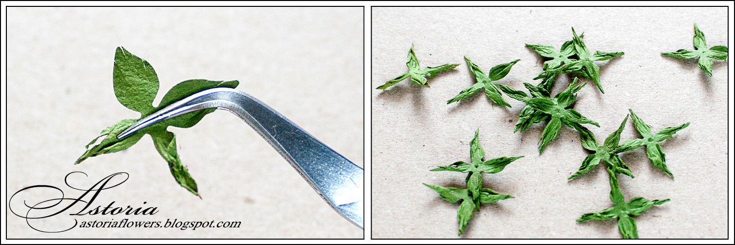 Проколите шилом в центре и надрежьте как показано на фото. Детали поместите в емкость с водой на некоторое время, затем промокните тканью.