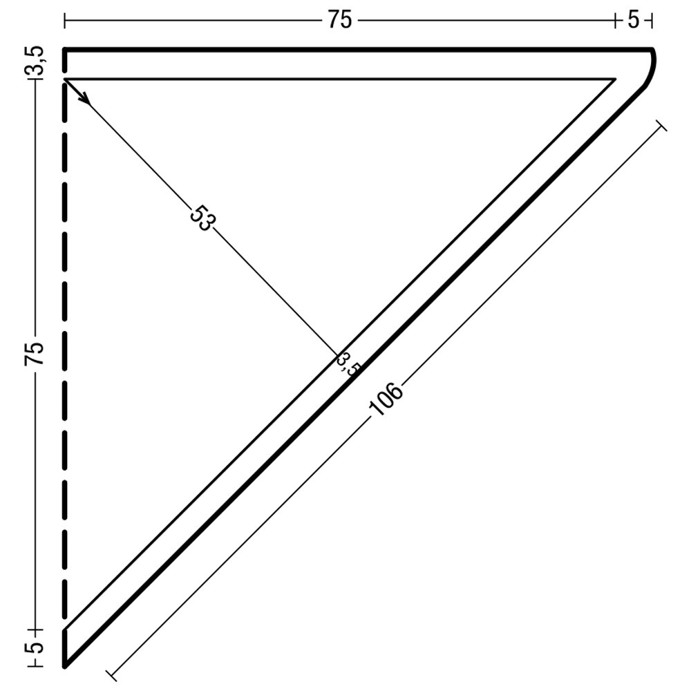 Изделие состоит из 2 треугольных половинок, разделенных средней петлей, от которой узор выполняется в зеркальном отображении. Платок вяжется от середины сверху вниз. Стрелкой на чертеже деталей выкройки обозначено направление вязания одной треугольной половинки.