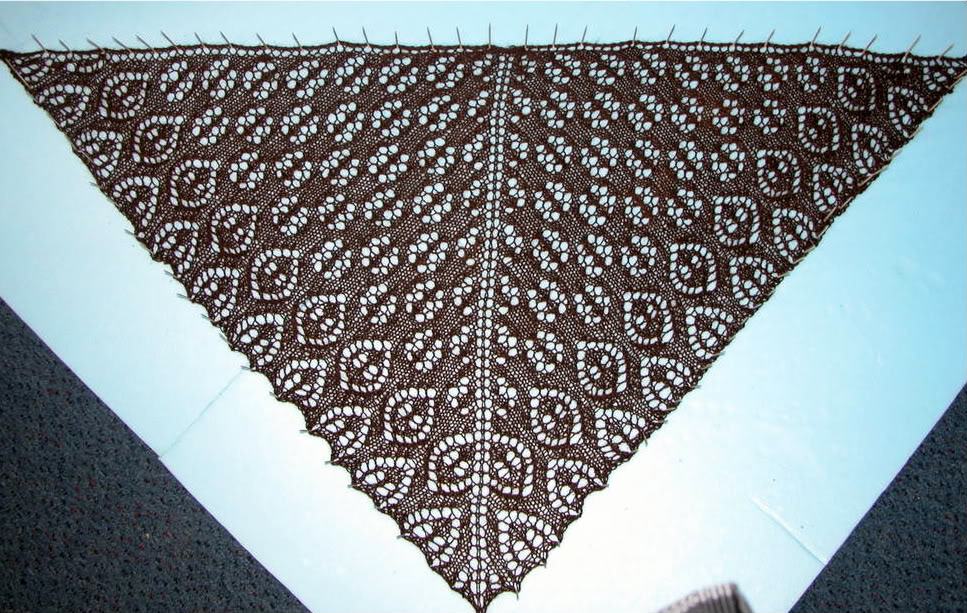 Дизайн этой шали несложен. Нашла в ''маленькой Диане'' ажурный узорчик,напоминающий маленькие ажурные овалы, потом ,по ходу вязания, переиначила этот узор в медальоны.